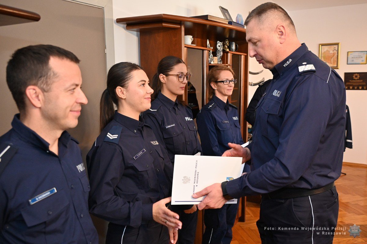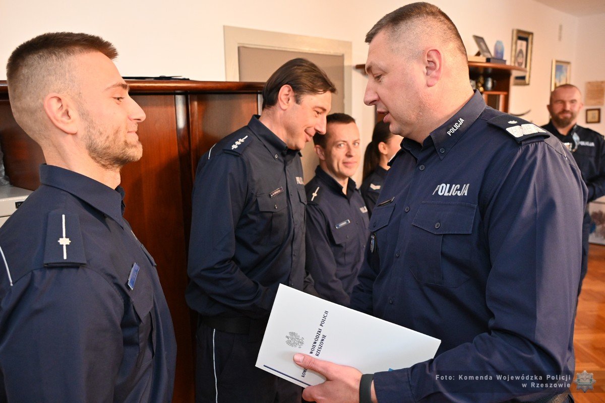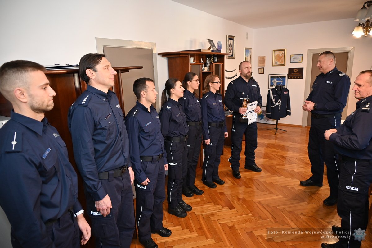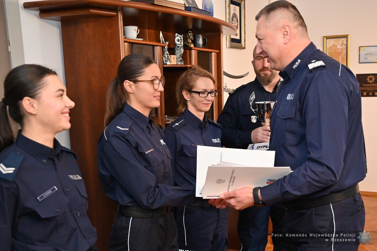 Nadinsp. Andrzej Patrzałek Komendant Wojewódzki Policji w Rzeszowie, chcąc osobiście pogratulować zwycięzcom, spotkał się wczoraj z nimi w swoim gabinecie, aby wręczyć policjantom pamiątkowe dyplomy. W spotkaniu uczestniczył również insp. Jacek Juwa, Zastępca Komendanta Wojewódzkiego w Rzeszowie, a także mł. insp. Magda Bator Naczelnik Wydziału Kadr i Szkolenia KWP w Rzeszowie.