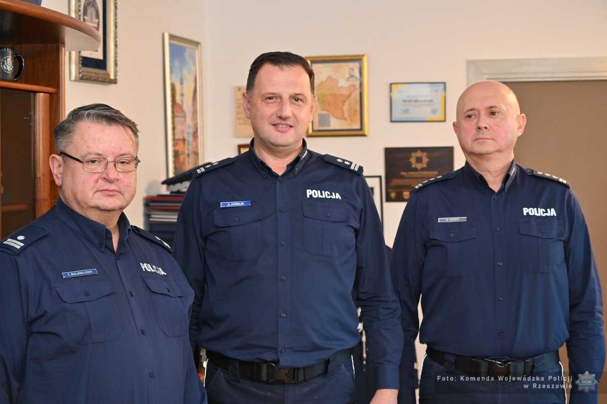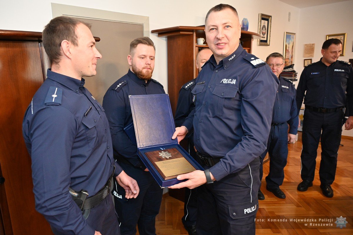 Nadinsp. Andrzej Patrzałek, Komendant Wojewódzki Policji w Rzeszowie chcąc osobiście pogratulować osiągniętego wyniku, spotkał się dziś z funkcjonariuszami w swoim gabinecie. Komendant podziękował policjantom za godne reprezentowanie garnizonu podkarpackiego oraz wręczył im pamiątkowe grawertony.