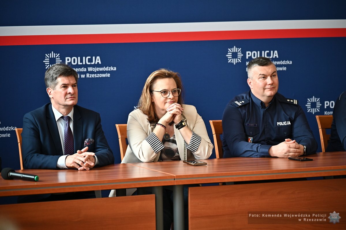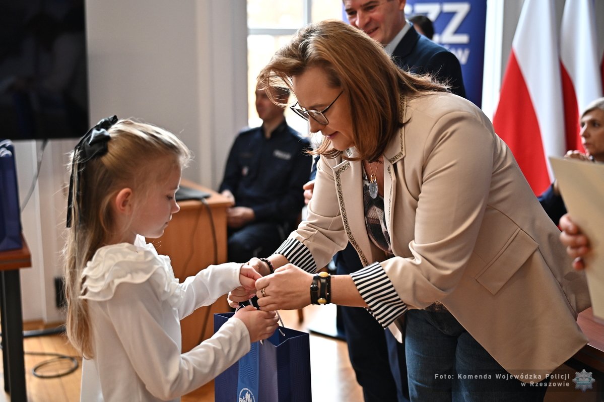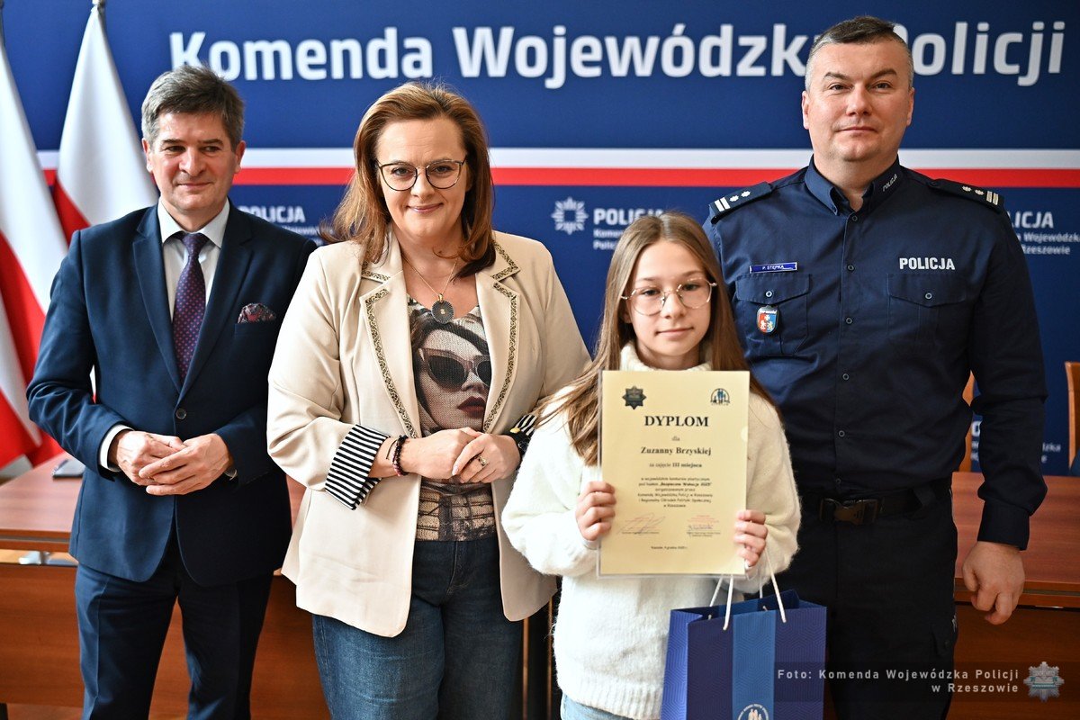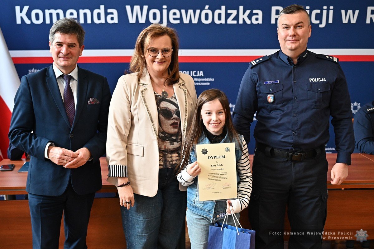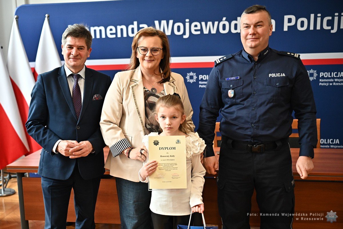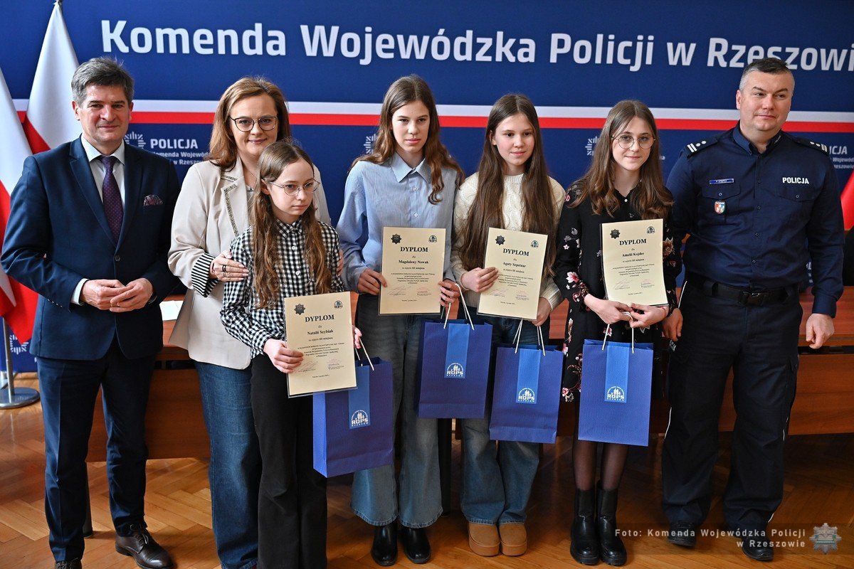 Nagrody i dyplomy wręczyli: Zastępca Komendanta Wojewódzkiego Policji w Rzeszowie młodszy inspektor Piotr Stępka, w imieniu Marszałka Województwa Podkarpackiego – Małgorzata Jarosińska-Jedynak oraz Jerzy Jęczmienionka - Dyrektor Regionalnego Ośrodka Polityki Społecznej w Rzeszowie.