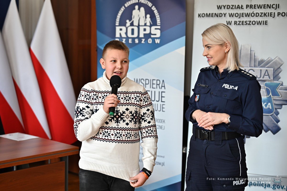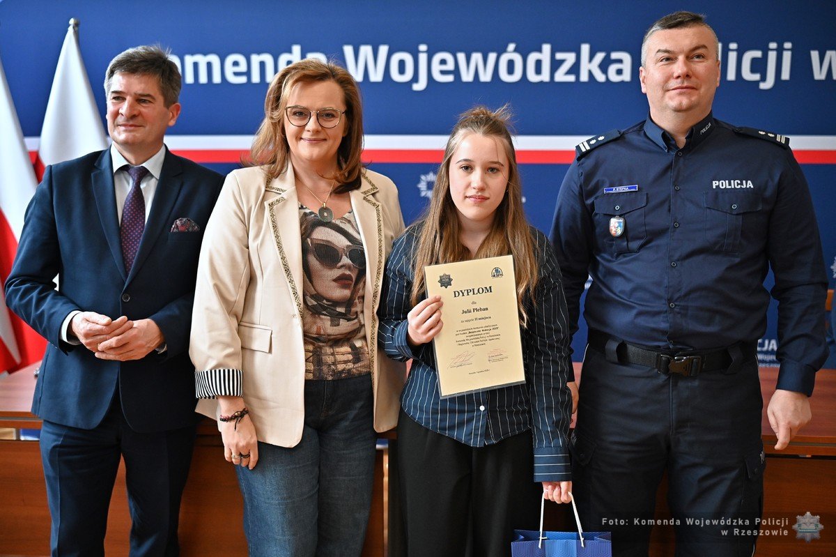 Wczoraj w auli Komendy Wojewódzkiej Policji w Rzeszowie uroczystym wręczeniem nagród zakończył się finał XIX edycji wojewódzkiego konkursu plastycznego „Bezpieczne Wakacje 2025” oraz XV edycji konkursu na profilaktyczny spot filmowy. Organizatorem konkursów był Wydział Prewencji Komendy Wojewódzkiej Policji w Rzeszowie oraz Regionalny Ośrodek Polityki Społecznej w Rzeszowie.