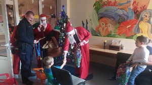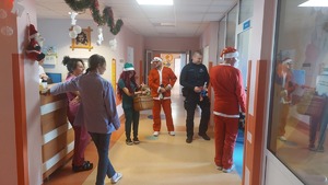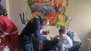 Święty Mikołaj wraz z policjantami odwiedził małych pacjentów szpitala