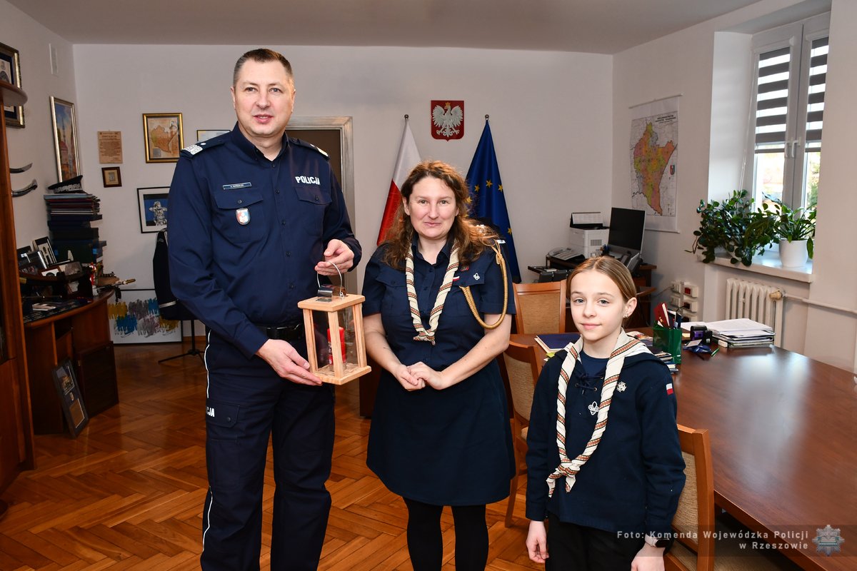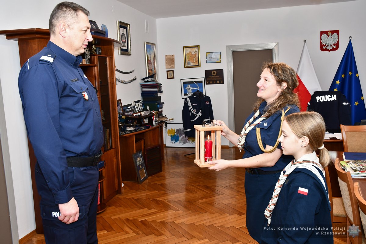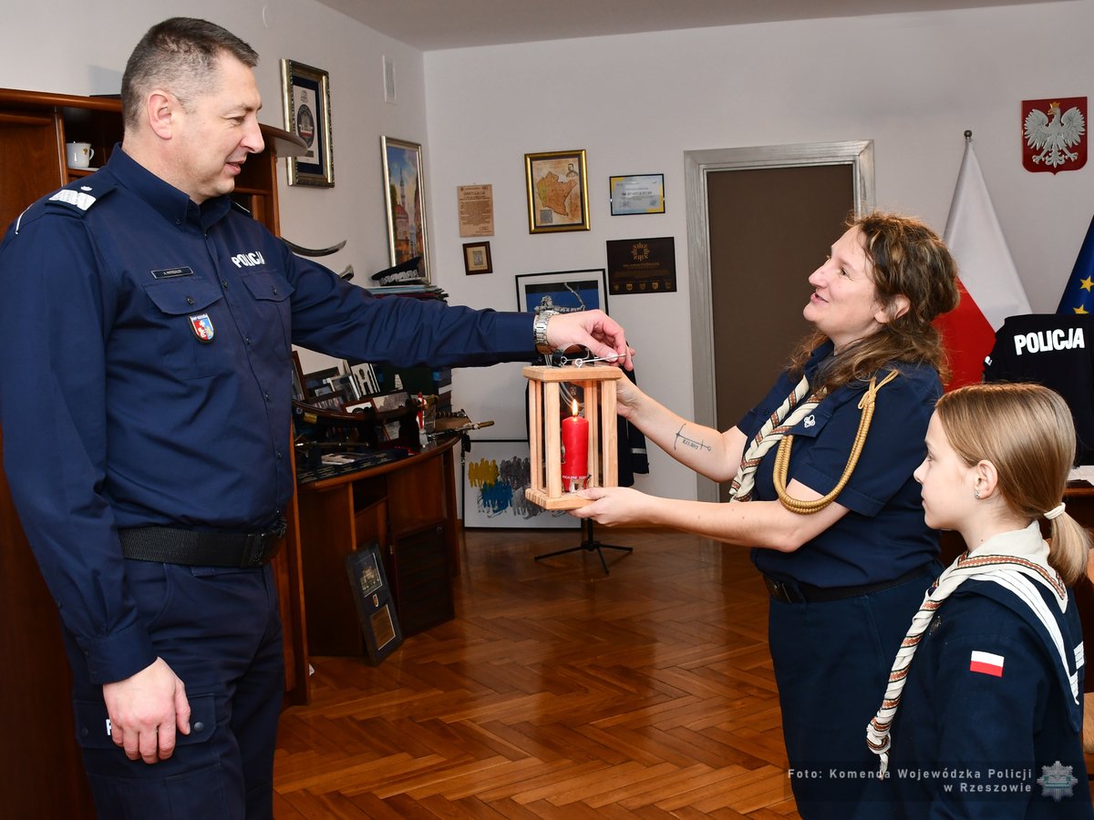 Komendant Wojewódzki Policji w Rzeszowie nadinsp. Andrzej Patrzałek otrzymał z rąk Komendantki Chorągwi Podkarpackiej ZHP, Betlejemskie Światło Pokoju. Przesłanie tegorocznej akcji to hasło „Pielęgnuj dobro w sobie”. Zgodnie z tradycją zapala się je i stawia na wigilijnym stole.