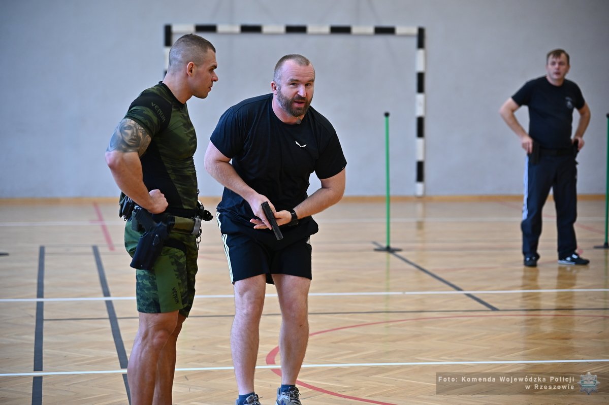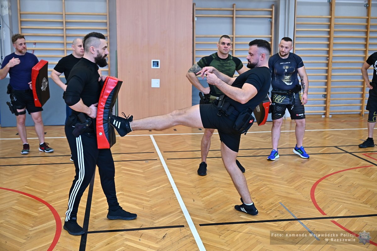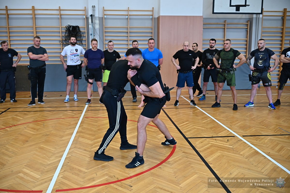 Na terenie Oddziału Prewencji Policji w Rzeszowie odbyły się warsztaty dla instruktorów taktyk i technik interwencji z komend miejskich i powiatowych naszego garnizonu. Zajęcia zorganizowane zostały przez Wydział Kadr i Szkolenia KWP w Rzeszowie i obejmowały tematykę podejmowania interwencji wobec osób z zaburzeniami świadomości, agresywnymi, będących pod wpływem środków odurzających lub w stanie upojenia alkoholowego. Tego typu szkolenia pozwalają przygotować policjantów do właściwej reakcji oraz szybkiej zmiany taktyki działania podczas interwencji.