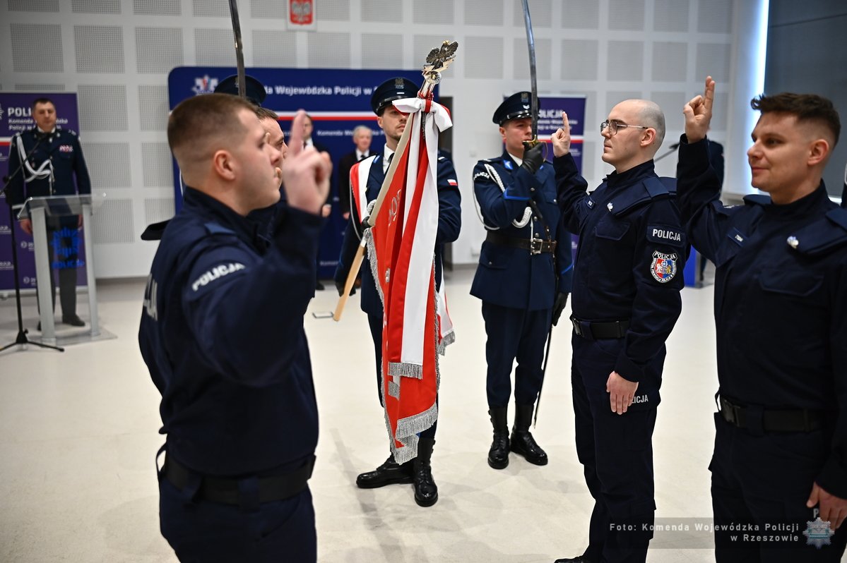 W auli Komendy Wojewódzkiej Policji w Rzeszowie odbyło się pierwsze w tym roku uroczyste ślubowanie nowo przyjętych funkcjonariuszy. Rotę ślubowania złożyło 28 policjantek i policjantów, którzy tym samym oficjalnie rozpoczęli służbę na rzecz bezpieczeństwa mieszkańców regionu. Nowi funkcjonariusze odebrali legitymacje z rąk nadinsp. Andrzeja Patrzałka Komendanta Wojewódzkiego Policji w Rzeszowie.