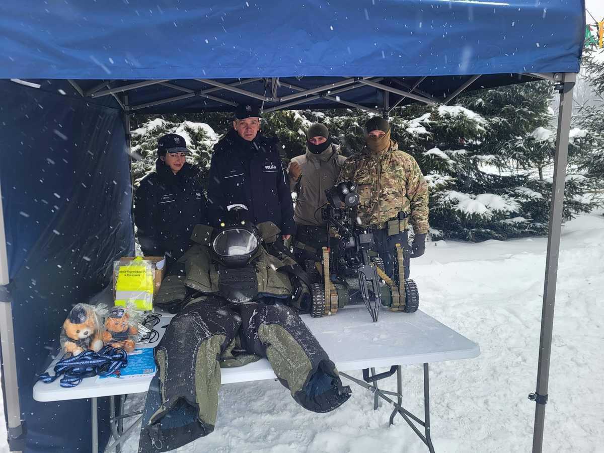 i sprzęt policyjny wykorzystywany w służbie przez policyjnych kontrterrorystów, w tym pokaz robota pirotechnicznego.
