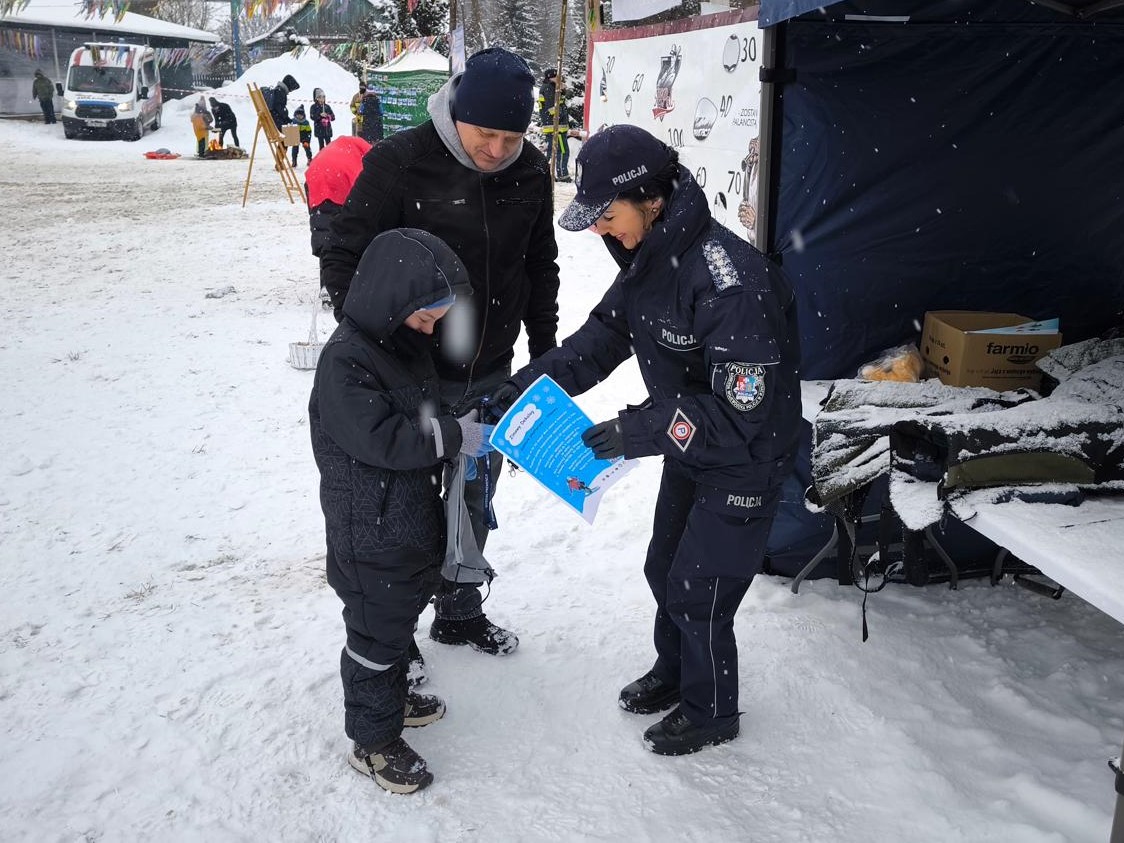 Policjanci przygotowali stoiska profilaktyczne, a uczestnicy wydarzenia mogli zapoznać się z materiałami dotyczącymi ogólnopolskiej akcji informacyjno - edukacyjnej pn.: „Kręci mnie bezpieczeństwo w zimie”, promującej odpowiedzialne zachowania zarówno na stoku, na drodze, podczas zabaw na świeżym powietrzu. Podczas spotkania policjanci prowadzili rozmowy z uczestnikami na temat szeroko rozumianego bezpieczeństwa oraz unikania zagrożeń. Najmłodszych uczestników zachęcano do udziału w ogólnopolskim konkursie plastyczno-filmowym pn.: „Zimowy Dekalog”, polegający na zilustrowaniu zasad Dekalogu Międzynarodowej Federacji Narciarskiej (FIS). Konkurs skierowany jest do dzieci i młodzieży do 16 roku życia. Szczególną atrakcją spotkania było prezentowane wyposażenie