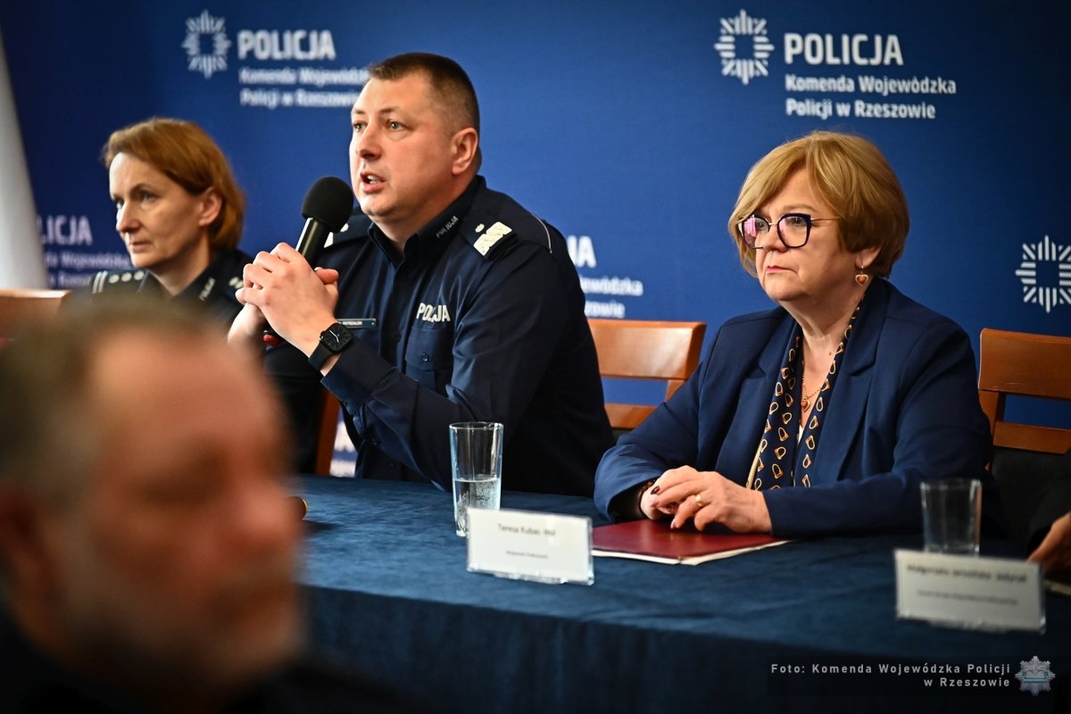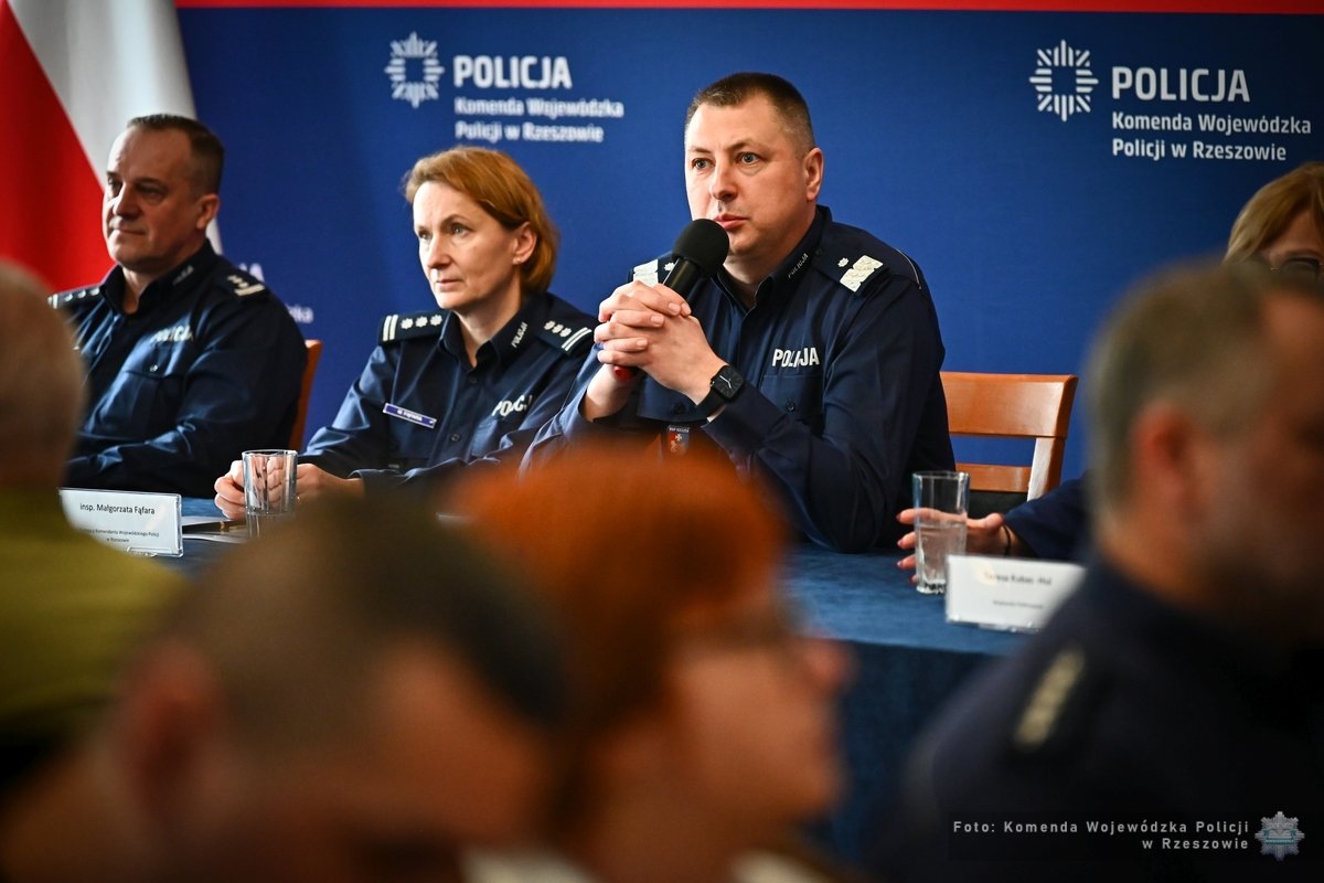 Komendant Wojewódzki Policji w Rzeszowie nadinsp. Andrzej Patrzałek zaprezentował stan bezpieczeństwa w 2025 r., omówił priorytety oraz przedstawił efekty działań podkarpackiej Policji. Podziękował przedstawicielom władz wojewódzkich i samorządowych za wsparcie na wielu płaszczyznach. Słowa podziękowania skierował także do przedstawicieli służb, instytucji, prokuratury, z którymi na co dzień współpracują podkarpaccy policjanci. Na ręce komendantów miejskich i powiatowych oraz naczelników wydziałów, przekazał podziękowania dla policjantów i pracowników za ich trud i zaangażowanie.