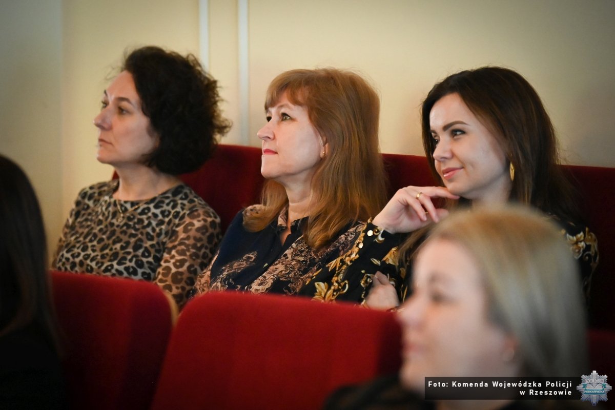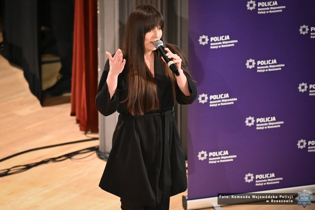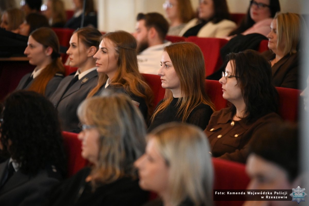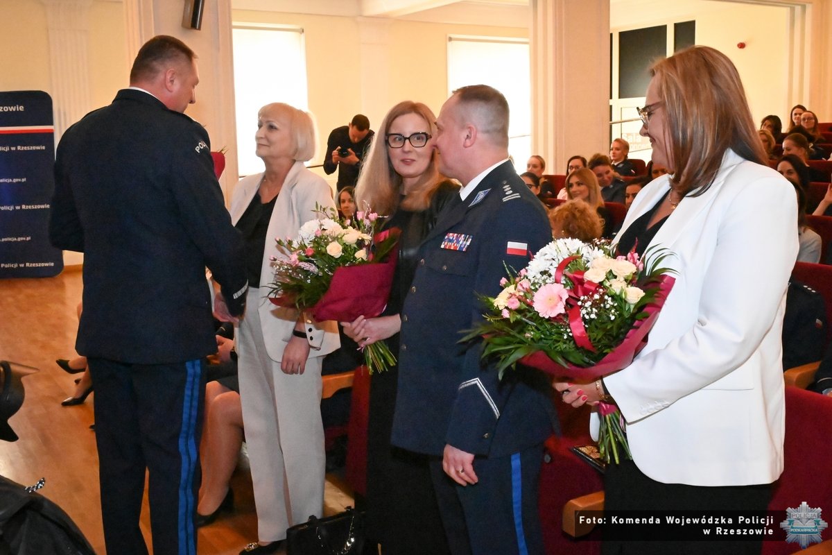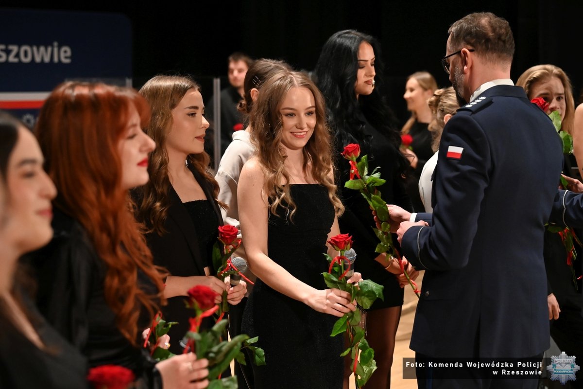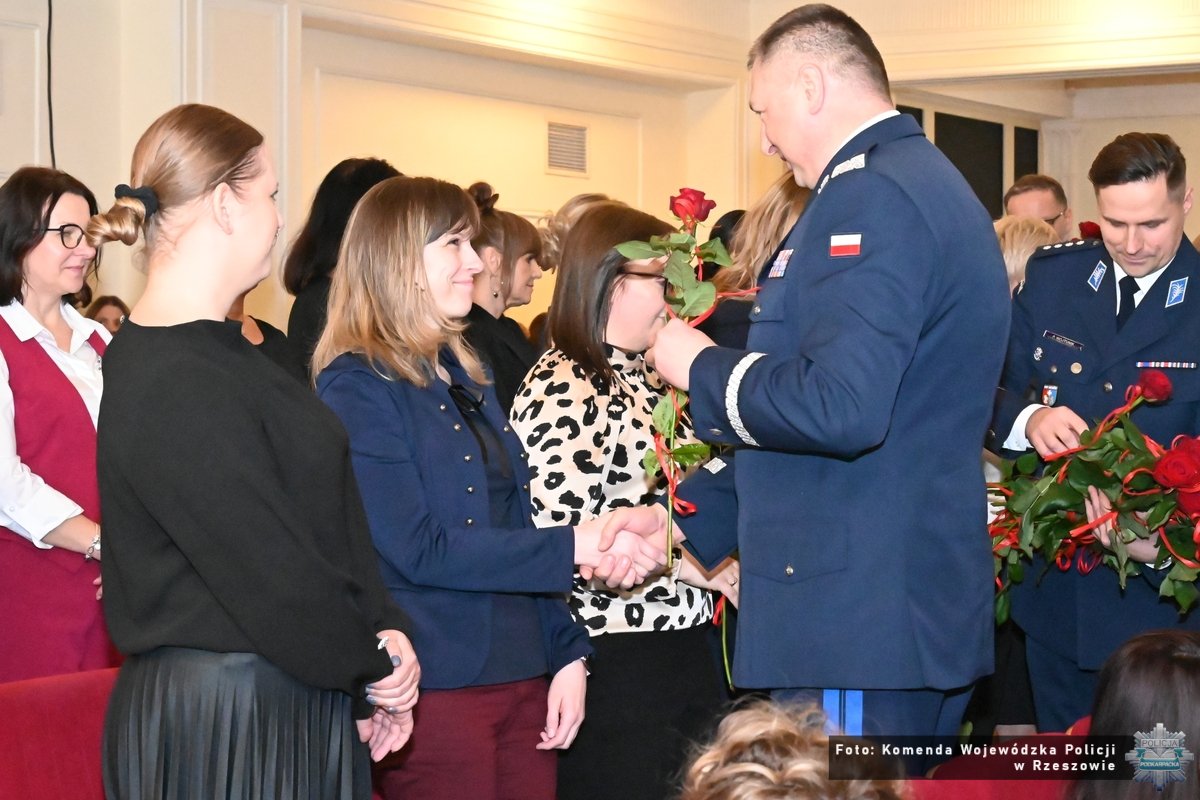 Na zakończenie tego wyjątkowego spotkania przedstawiciele kierownictwa podkarpackiej Policji z Komendantem Wojewódzkim na czele, wręczyli wszystkim Paniom obecnym na widowni róże, jako wyraz wdzięczności za ich służbę i pracę, z najlepszymi życzeniami z okazji Dnia Kobiet.