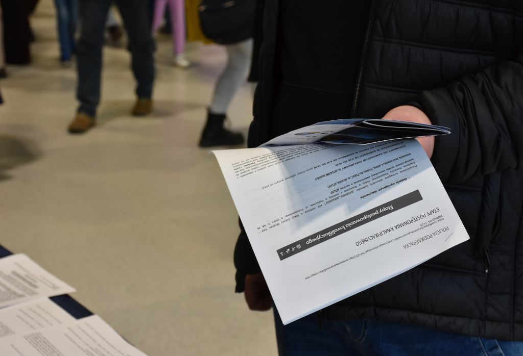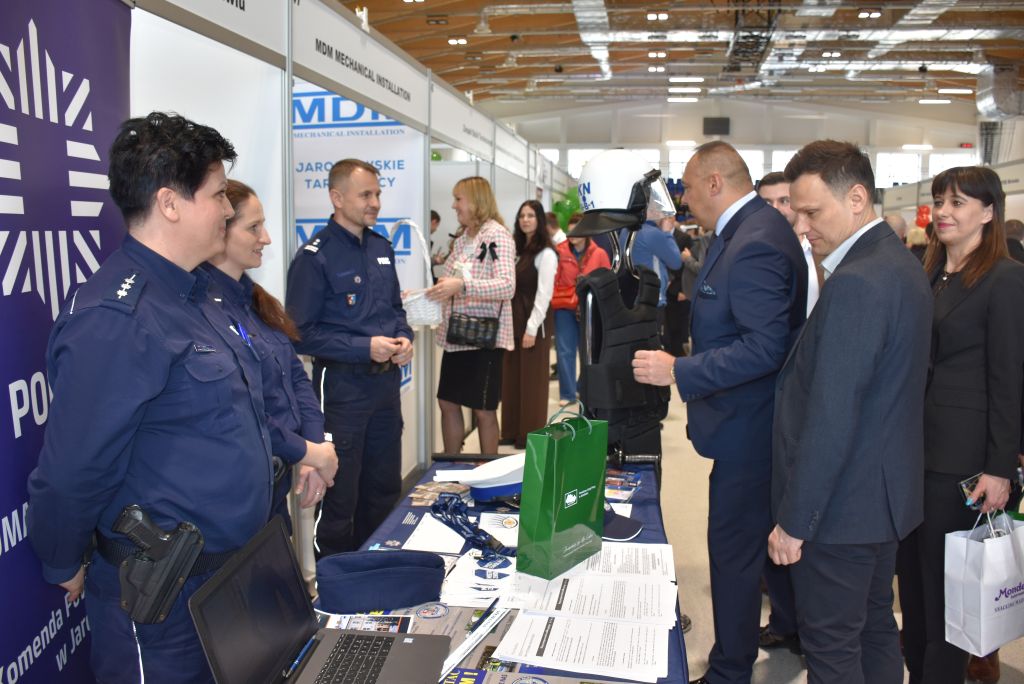 Na targach nie zabrakło również przedstawicieli Policji. Mł. insp. Marek Hajduk - I Zastępca Komendanta Powiatowego Policji w Jarosławiu wziął udział w uroczystości otwarcia tego wydarzenia. Jarosławskie policjantki st. asp. Agnieszka Stysiał i sierż. Wioletta Wywrot-Głąb, a także pracownica cywilna Zespołu Kadr i Szkolenia odpowiadały na pytania zainteresowanych służbą w Policji. Uczestnicy mogli uzyskać szczegółowe informacje o wymaganiach, procesie rekrutacji oraz wyzwaniach związanych ze służbą w Policji. Zainteresowani otrzymali również ulotki z informacjami dla kandydatów do służby.