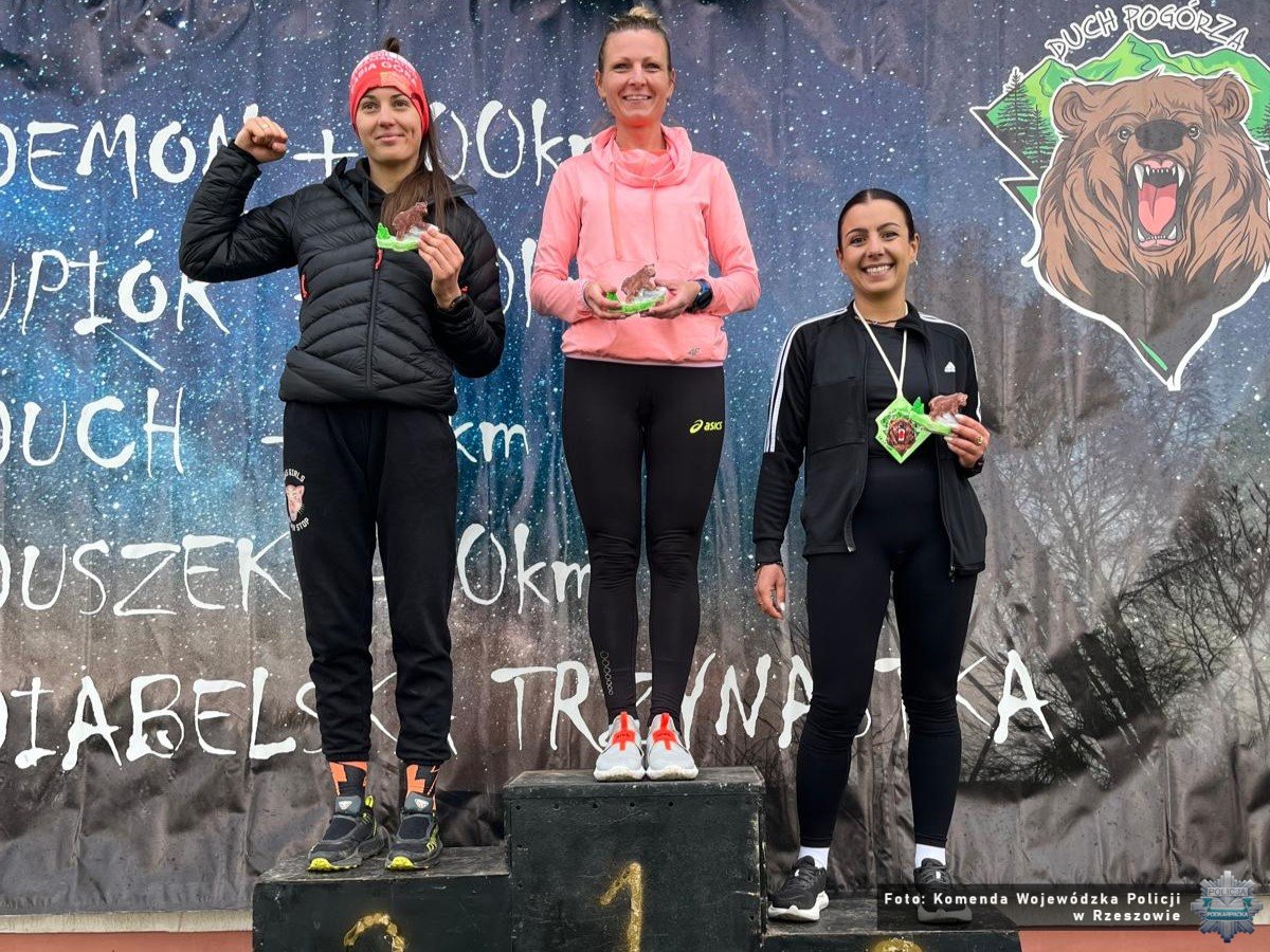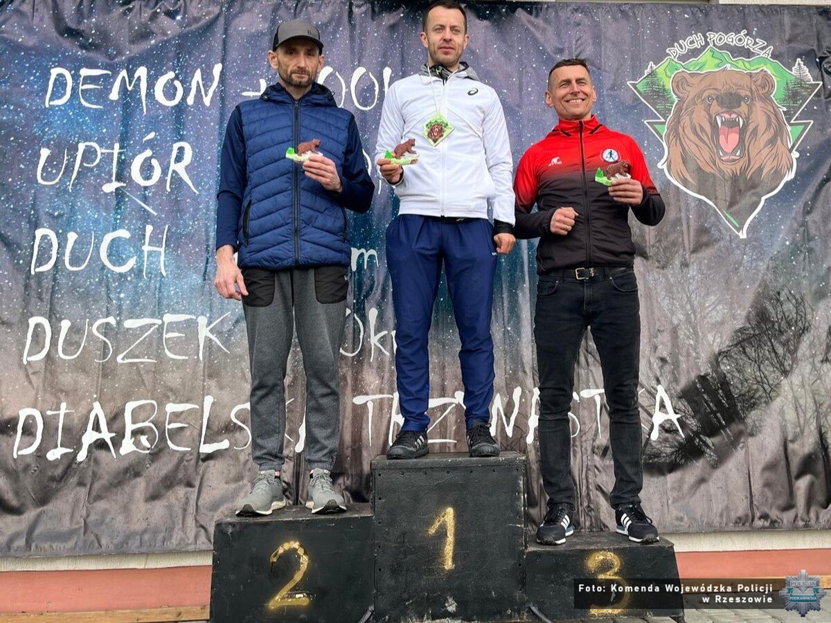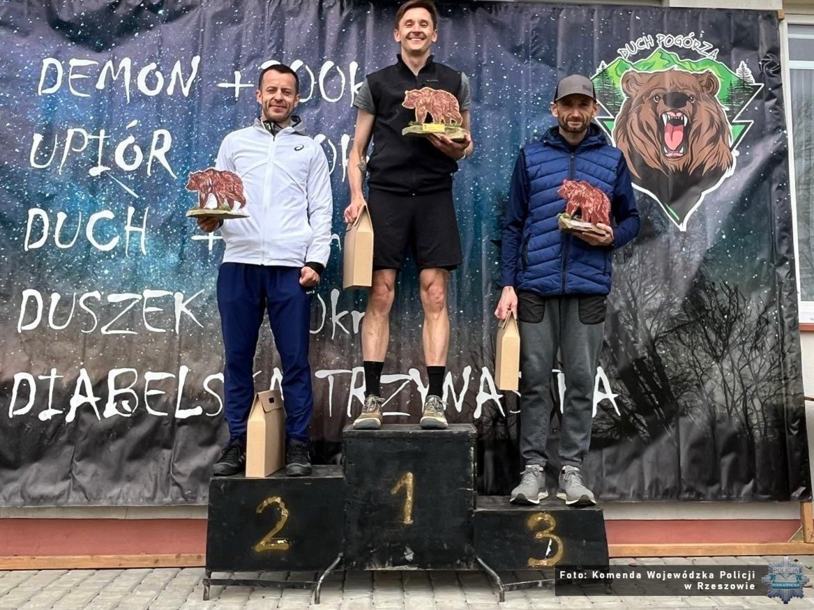 Policjanci z garnizonu podkarpackiego z sukcesami wystartowali w biegu górskim „Diabelska Trzynastka” rozegranym w Dubiecku w ramach wydarzenia „Duch Pogórza”. Reprezentanci Komendy Wojewódzkiej Policji w Rzeszowie stanęli na podium zarówno w klasyfikacji generalnej, jak i w kategoriach dodatkowych. Serdecznie gratulujemy wszystkim zawodnikom znakomitych wyników, sportowej postawy oraz godnego reprezentowania podkarpackiej Policji. Na wszystkich uczestników, którzy dotarli do mety, czekały medale. Najlepsi zawodnicy otrzymali pamiątkowe statuetki.