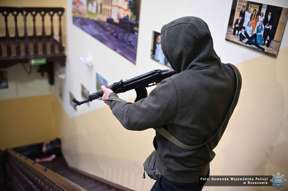Po upływie kilku minut, do działań wkroczyli policyjni z Samodzielnego Pododdziału Kontrterrorystycznego w Rzeszowie, którzy przeprowadzili symulowaną neutralizację zagrożenia. W sytuacji „Active Shooter”, funkcjonariusze podejmują natychmiastowe działania, aby jak najszybciej zlokalizować i unieszkodliwić sprawcę. Priorytetem jest szybkie przerwanie zagrożenia i ochrona życia.