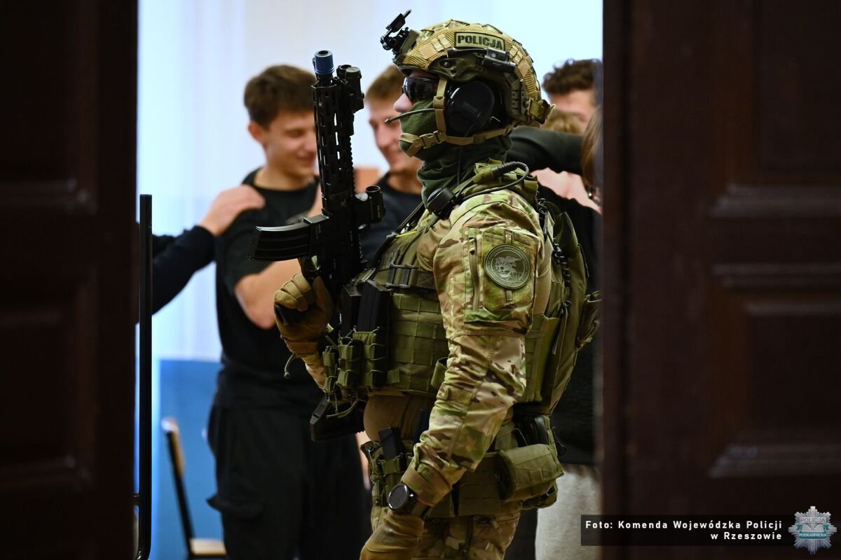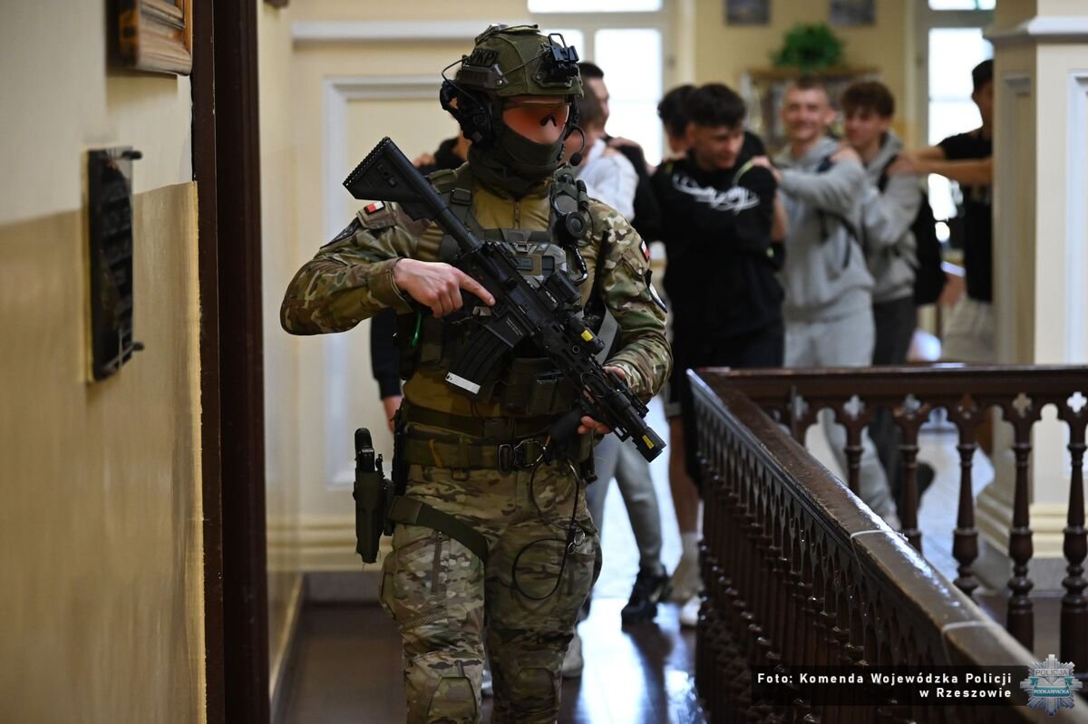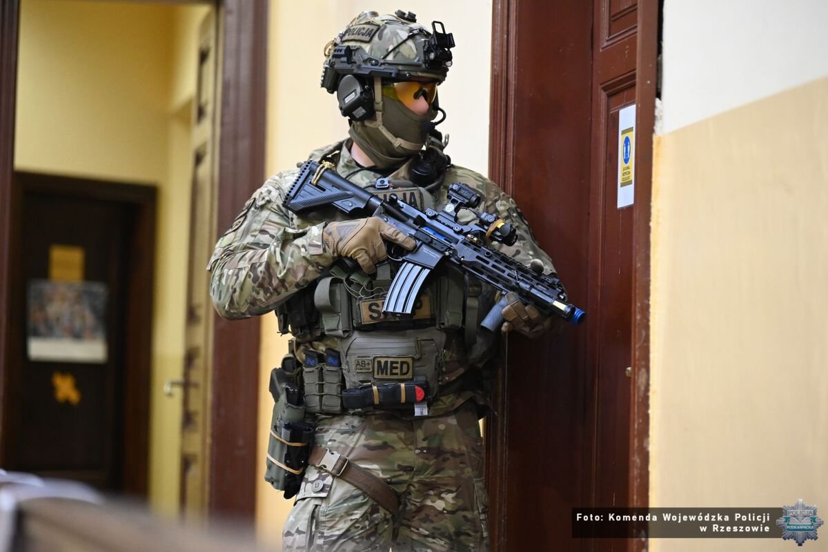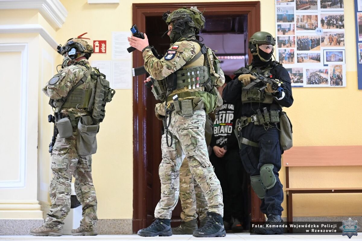 O tym jak ważne jest doskonalenie swoich umiejętności, wiedzą dobrze funkcjonariusze z Samodzielnego Pododdziału Kontrterrorystycznego Policji w Rzeszowie. Codziennie podejmują szereg działań, które wymagają szybkich decyzji i zdecydowanych reakcji. Cykliczne szkolenia pomagają wypracować umiejętności, które mogą zostać wykorzystane w realnych warunkach. Na terenie Zespołu Szkół w Tyczynie, funkcjonariusze przeprowadzili kompleksowe szkolenie oraz ćwiczenia praktyczne z zakresu reagowania na zagrożenia o charakterze terrorystycznym, w tym sytuacje typu „Active Shooter”. Przedsięwzięcie zostało zrealizowane przy współpracy z dyrekcją szkoły, kadrą pedagogiczną oraz uczniami.