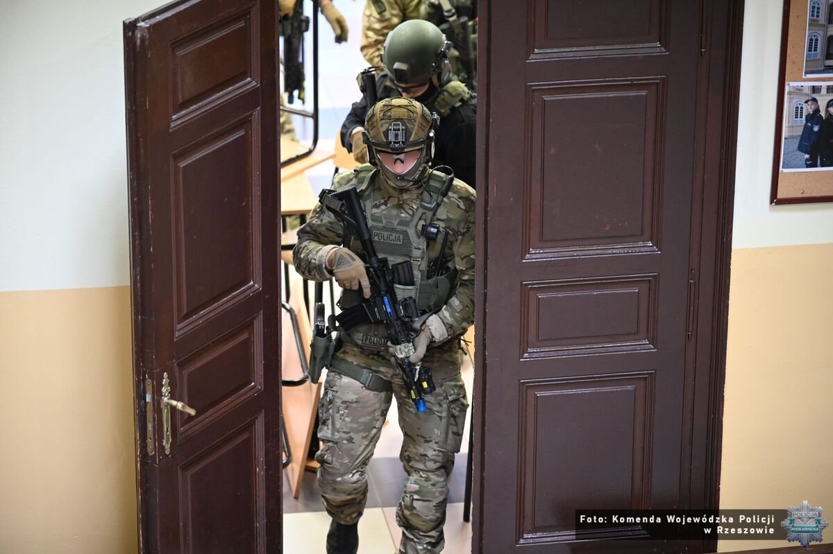 „Active Shooter” w Zespole Szkół w Tyczynie z udziałem policyjnych kontrterrorystów
