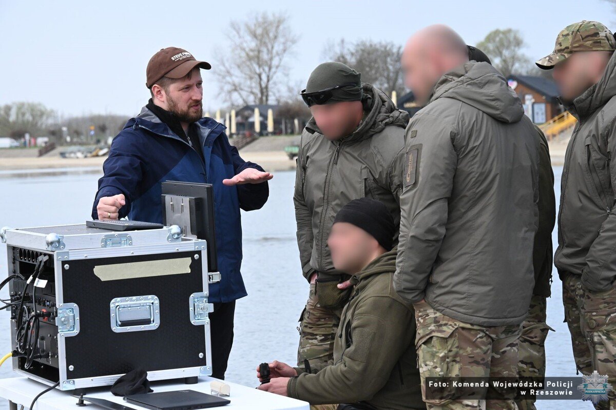 Nowy dron trafił na wyposażenie podkarpackich kontrterrorystów, którzy w czwartek na terenie Jeziora Tarnobrzeskiego, szkolili się z obsługi i testowali jego możliwości w rzeczywistych warunkach. Zajęcia miały charakter zarówno teoretyczny jak i praktyczny. Wzięli w nim udział - Zastępca Komendata Wojewódzkiego Policji w Rzeszowie mł. insp. Piotr Stępka, funkcjonariusze z Samodzielnego Pododdziału Kontrterrorystycznego Policji z Rzeszowa i Kielc oraz przedstawiciele firmy, gdzie został zakupiony sprzęt, którzy przeprowadzili szkolenie z zakresu odbsługi i użytkowania podwodnego drona.
