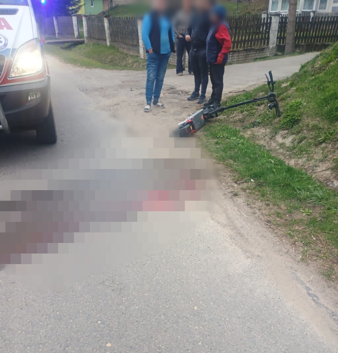 Na miejscu, policjanci ustalili, że kierujący hulajnogą elektryczną, jechał drogą powiatową, a tuż obok niego biegł pies. W pewnym momencie, zwierzę wbiegło mu przed pojazd, wówczas mężczyzna stracił panowanie nad pojazdem i upadł na jezdnię.