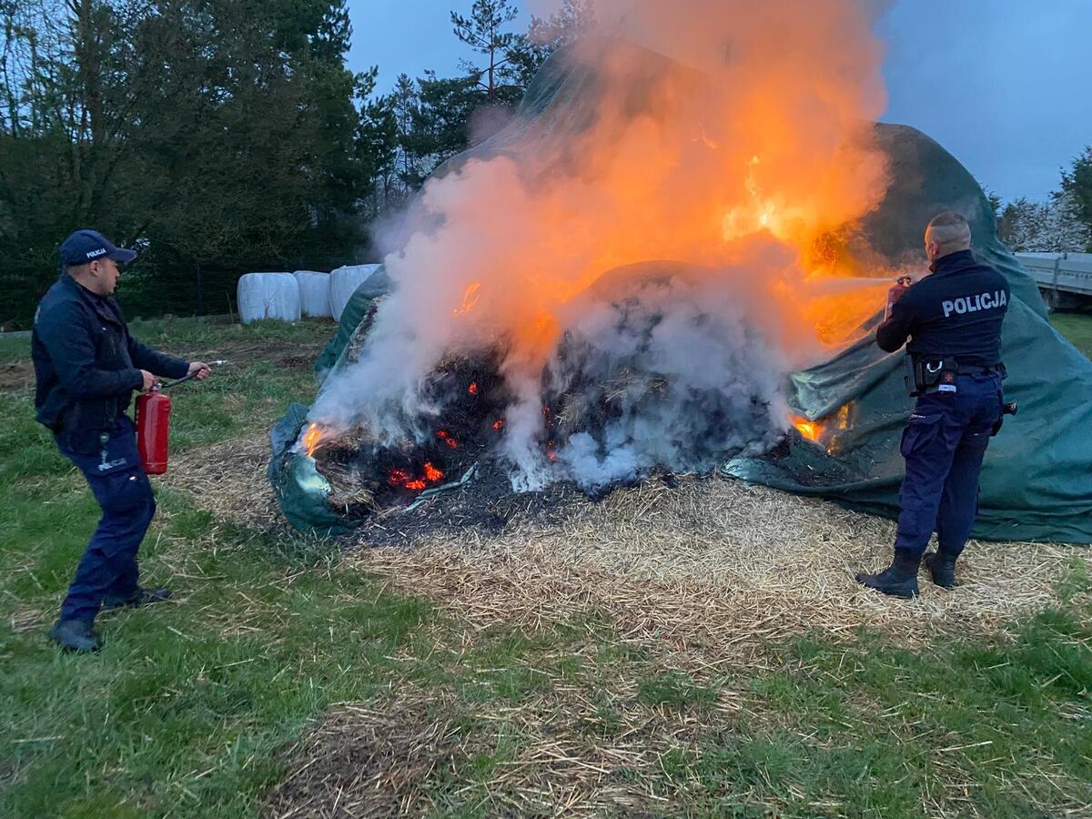 30-latek podpalił siano składowane na posesji swoich rodziców. Jego czyn miał być zemstą za to, że nie chcieli go wpuścić do domu, bo był nietrzeźwy. Pierwsze czynności przy opanowaniu ognia, podjęli policjanci.