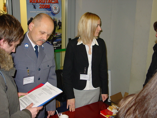 28 lutego br., w Hali Widowiskowej na Podpromiu odbyły się VIII Podkarpackie Targi Pracy. Na kilkudziesięciu stoiskach swoje oferty pracy prezentowały różne firmy i instytucje, wśród nich także przedstawiciele Komendy Wojewódzkiej Policji w Rzeszowie. Nasze stoisko cieszyło się bardzo dużym zainteresowaniem. Wiele osób pytało o pracę w Policji, o zasady rekrutacji, wymagane dokumenty, o wymagane warunki fizyczne, jakie trzeba spełniać aby zostać policjantem, o kolejne etapy postępowania kwalifikacyjnego. Młodzi ludzie interesowali się także praktyczną stroną służby w Policji. Padały pytania dotyczące naboru pracowników do korpusu służby cywilnej. Na wszystkie te pytania wyczerpująco odpowiadali przedstawiciele KWP w Rzszowie. Pełną relację z VIII Podkarpackich Targów Pracy znajdziesz w zakładce "Z życia Policji".