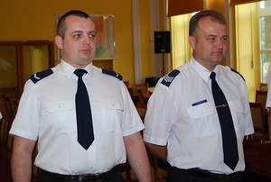 "Jesteśmy z Was dumni. To prawdziwe wypełnienie roty policjanta, który stoi na straży bezpieczeństwa obywateli, nawet z narażeniem życia" - tymi słowami I Zastępca Podkarpackiego Komendanta Wojewódzkiego Policji w Rzeszowie inspektor Kazimierz Mruk podziękował policjantom z Mielca i Stalowej Woli. To oni uratowali życie zdesperowanej kobiecie i wynieśli dwie, nieprzytomne osoby z zadymionego mieszkania. Dziś sierż. Mariusz Dul, sierż. szt. Piotr Główka, st. sierż. Marek Płatek i sierż. szt. Sławomir Gazda odebrali gratulacje i nagrody. Szczegóły znajdziesz w zakładce "Z życia Policji". Na zdjęciach nagrodzeni policjanci:1. Sierż. Mariusz Dul i sierż. szt. Piotr Główka z KPP w Stalowej Woli 2. St. sierż. Marek Płatek i sierż. szt. Sławomir Gazda z KPP w Mielcu