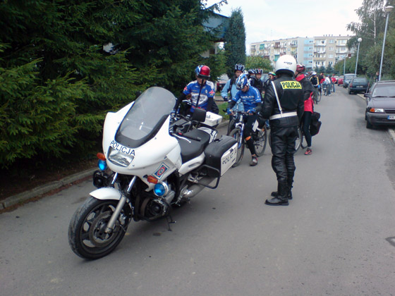 Kilkudziesięciu krośnieńskich gimnazjalistów wzięło udział we wczorajszym pikniku, organizowanym przez krośnieński Sanepid i Urząd Miasta przy współudziale Policji w ramach ogólnopolskiego programu "Trzymaj formę". Policjanci ruchu drogowego rozmawiali z uczestnikami o bezpiecznym poruszaniu się po drogach, dzieci miały też możliwość oznakowania roweru. Atrakcją był przejazd na rowerach w asyście policjantów kilkunastokilometrową trasą z Krosna do Skansenu - Muzeum Przemysłu Naftowego w Bóbrce. O szczegółach przeczytasz na stronie KMP w Krośnie. Na zdjęciach: 1. Przed wyjazdem na terasę rajdu. W środku Państwowy Powiatowy Inspektor Sanitarny, Pan Marek Wilk. 2. Przejazd uczestników rajdu do Bóbrki.