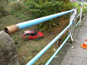 Dziś przed południem samochód z dwiema kobietami zjechał z mostu i wpadł do rzeki. Do wypadku doszło w Soninie, w powiecie łańcuckim. Wjeżdżając na most kierująca samochodem kobieta straciła panowanie nad pojazdem, który staranował barierkę ochronną i spadł z wysokości kilku metrów do rzeki. Matka doznała złamania obojczyka, jej córka kierująca samochodem z podejrzeniem wstrząśnienia mózgu znalazła się w szpitalu. O zdarzeniu czytaj na stronie KPP w Łańcucie. Foto: Andrzej Łapkowski - Super Nowości