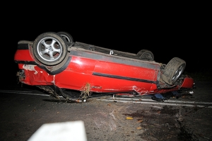 32-letni kierowca volkswagena nie żyje, a ranny pasażer przebywa szpitalu. Do tragicznego wypadku doszło wczoraj, poźnym wieczorem w Roźwienicy (pow.jarosławski). Jak wynika ze wstepnych ustaleń Policji, kierujacy vw golfem, na łuku drogi stracił panowanie nad pojazdem. Samochód zjechał na przeciwny pas ruchu, potem na skarpę i dachował. Obaj mężczyźni zostali wyrzuceni na zewnątrz. Obrażenia kierowcy okazały się śmiertelne. Więcej o wypadku przeczytasz na stronie KPP w Jarosławiu.Foto: KPP Jarosław