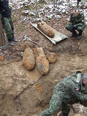 Tylko do południa w lasach pod Mielcem odnaleziono 9 bomb lotniczych o wadze 100 kg każda i 6 pocisków artyleryjskich 76 mm. Ponadto m.in. uzbrojoną wyrzutnię ręczną tzw. pancerfaust. To efekty operacji p.n. "Detektor", w której uczestniczą policjanci z Centralnego Biura Śledczego, z komendy w Mielcu, wojsko i inne służby.W tym roku już kilkanaście razy Policja w Mielcu była zawiadamiana o groźnych pozostałościach wojny, najczęściej przez grzybiarzy. Niewybuchy i niewypały tutaj odnajdywane to głównie pociski artyleryjskie, bomby lotnicze i granaty moździerzowe z czasów drugiej wojny światowej, których wiele pozostało właśnie tutaj. Takie interwencje wymagają angażowania wielu sił i środków, miejsce musi zostać zabezpieczone do czasu usunięcia zagrożenia.Celem operacji jest też przeciwdziałanie zagrożeniom o charakterze terrorystycznym. Obecność niewybuchów to łatwość pozyskiwania materiałów niebezpiecznych przez ludzi nieodpowiedzialnych, jak też przestępców. Jak wynika z analiz spraw prowadzonych przez CBŚ i jednostki Policji na Podkarpaciu, to w większości przypadków zabezpieczane w toku śledztw materiały wybuchowe były pozyskiwane z niewypałów z lat 40. minionego wieku. Z nich przestępcy mogą konstruować samodziałowe urządzenia wybuchowe. Dziś od rana w lasach koło Mielca poszukiwane są niewypały. Teren, na którym trwa operacja został zabezpieczony. W operacji biorą udział policjanci z CBŚ, KPP w Mielcu, Oddziałów Prewencji w Rzeszowie, policyjni antyterroryści, saperzy z 21 Batalionu Dowodzenia w Rzeszowie, Państwowa Straż Pożarna z Mielca, Straż Leśna z Mielca i Nadleśnictwo w Mielcu, Straż Miejska w Mielcu oraz przedstawiciele Wydziału Zarządzania Kryzysowego Starostwa Powiatowego w Mielcu. Materiały niebezpieczne sprzed lat znajdują się w wielu miejscach na Podkarpaciu. Policja przypomina, że w przypadku ich odnalezienia należy bezzwłocznie o tym powiadomić. Bardzo ryzykowne jest przenoszenie takich przedmiotów. Niemal co roku notujemy przypadki eksplozji niewypałów lub bomb skonstruowanych z pozyskanych z nich materiałów. Najczęściej ich skutek jest tragiczny.