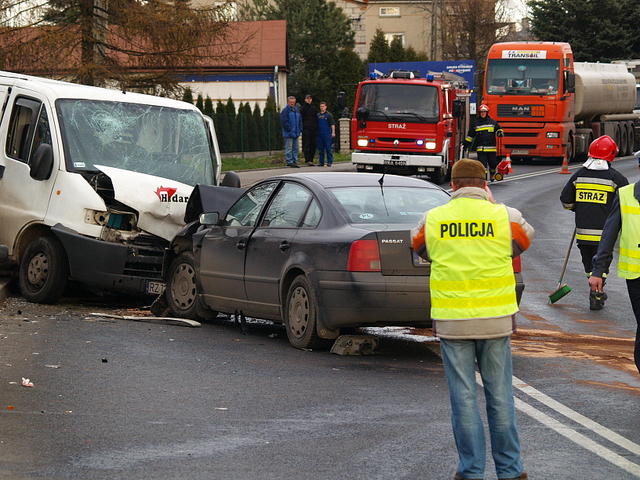 Od godz. 13.15, ruch na drodze krajowej nr 9 w Boguchwale odbywa się bez utrudnień. Przed południem zderzyły się tam dwa samochody, volkswagen passat i dostawczy citroen. Cztery osoby zostały przewiezione do szpitala, jedna jest w ciężkim stanie. Dziś, kwadrans po godz. 11, służby ratownicze zostały powiadomione o wypadku, do jakiego doszło w Boguchwale w powiecie rzeszowskim. Ze wstępnych ustaleń Policji wynika, że kierujący volkswagenem passatem, na łuku drogi zjechał na przeciwny pas ruchu i uderzył w nadjeżdżającego citroena jumpera. Cztery osoby trafiły do szpitali w Rzeszowie. 25-letni pasażer citroena jest ciężko ranny. Policjanci wyjaśniają przyczyny tego wypadku. O szczegółach wypadku przeczytasz na stronie KMP w Rzeszowie. Foto:A.Łapkowski "Super Nowości"