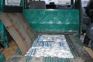 Niżańscy policjanci wraz z funkcjonariuszami Izby Celnej zatrzymali do kontroli drogowej kierowcę volkswagena. Okazało się, że mężczyzna przewoził ponad 2 tysiące paczek papierosów bez polskich znaków akcyzy. Czujność wspólnego patrolu policjantów drogówki i funkcjonariuszy Izby Celnej wzbudziła informacja od Straży Granicznej o vw transporterze, który może przewozić nielegalne papierosy. Zatrzymanym do kontroli volkswagen na krakowskich numerach podróżowało dwóch mężczyzn. Dodatkowe podejrzenia patrolu wzbudziło nerwowe zachowanie kierowcy. Kiedy policjanci dokładniej przyjrzeli się podłodze samochodu znaleźli w niej wyciętą dziurę, a w środku ukryte papierosy. Resztę paczek funkcjonariusze znaleźli pod siedzeniem pasażera. W sumie zabezpieczono ponad 2 tysiące paczek papierosów różnych marek. O tym zdarzeniu czytaj także na stronie Komendy Powiatowej Policji w Nisku.