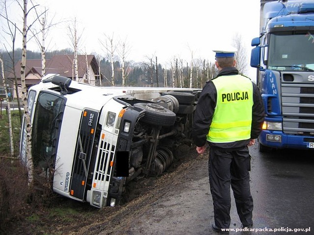 Do zdarzenia doszło wczoraj po godz. 3. Tir przewożący 20-tonowy ładunek jabłek wjechał do rowu. Przez kilka godzin przeładowywano jabłka do innej ciężarówki. O godz. 16.30 rozpoczęła się akcja wyciągania tira z rowu. O godz. 17.40 akcję przerwano, poniewż sprowadzony dźwig nie dał rady podnieść ciężarówki. Czekano na sprowadzenie cięższego sprzętu.