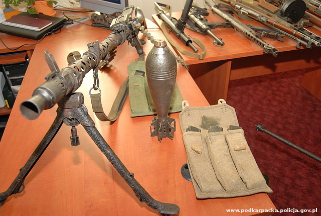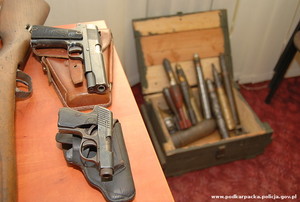 Policjanci odebrali podejrzanym ponad 20 jednostek broni palnej (karabiny, karabinki, pistolety maszynowe, pistolety, granatnik), używanej podczas II wojny światowej, odebrali też kilkaset sztuk amunicji (granaty, pociski, naboje, w tym artyleryjskie). Przejęli też sporo części broni, przygotowanych do konserwacji i remontu.