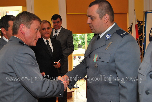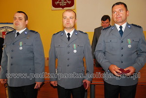 Mł. asp. Andrzej Zimny, sierż. szt. Piotr Główka i sierż. Mariusz Dul odebrali dziś Medal za Ofiarność i Odwagę. Odznaczenia wręczył im Podkarpacki Komendant Wojewódzki Policji w Rzeszowie inspektor Józef Gdański. Policjanci uratowali życie czworga ludzi. Pospieszyli z pomocą z narażeniem własnego życia.