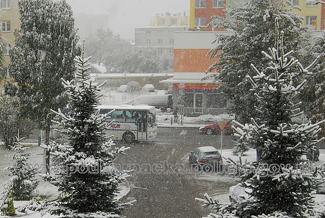Od rana w naszym województwie pada mokry śnieg. Drogi są śliskie, a obfite opady znacznie ograniczają widoczność. Wielu kierowców nie zdążyło jeszcze wymienić opon na zimowe. Pod naporem mokrego śniegu łamią się gałęzie drzew spadając na jezdnię i blokując przejazd.