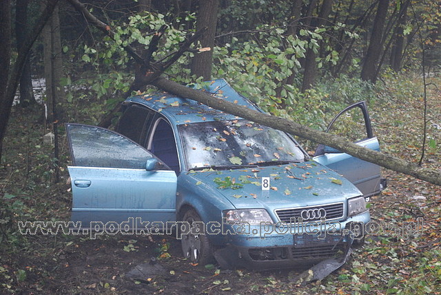 Do wypadku doszło około godz. 9.30, w powiecie niżańskim. Ze wstępnych informacji wynika, że kierowca volkswagena skręcając w lewo na posesję zajechał drogę jadącemu z naprzeciwka audi. Kierowca audi chcąc uniknąć zderzenia, prawdopodobnie w wyniku gwałtownego hamowania stracił panowanie nad pojazdem i uderzył w przydrożne drzewo. Jednego z pasażerów audi nie udało się uratować. W wyniku odniesionych obrażeń 23-letni mężczyzna zmarł na miejscu wypadku. Kierowca i dwóch pozostałych pasażerów audi trafiło do szpitala w Nisku.