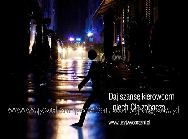 Kilka dni temu rozpoczęła się trzecia edycja ogólnopolskiej kampanii społecznej "Użyj wyobraźni". Tym razem jej tematem jest właśnie bezpieczeństwo pieszych w okresie jesienno-zimowym. Przypominamy dwa hasła towarzyszące kampanii - pierwsze skierowane do pieszych: daj szansę kierowcom - niech Cię zobaczą. Drugie odnosi się do kierowców: daj szansę pieszym - zwolnij. Przeczytaj informację o kampanii i bezpieczeństwie pieszych w okresie jesienno-zimowym.