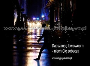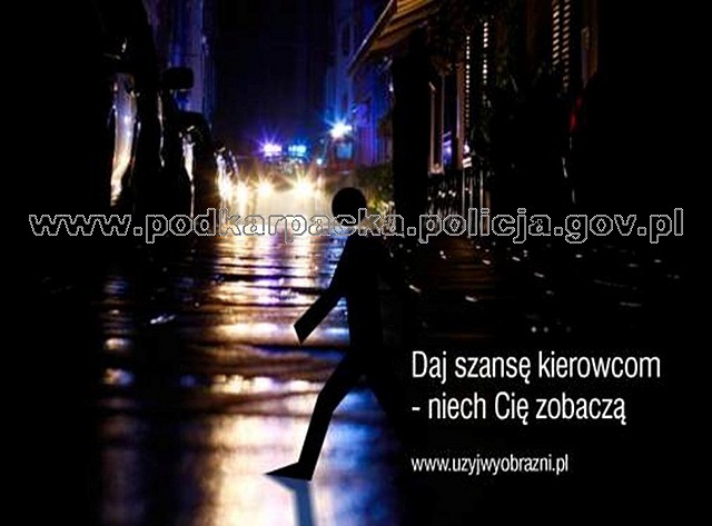 Na początku listopada rozpoczęła się trzecia edycja ogólnopolskiej kampanii społecznej "Użyj wyobraźni". Tym razem jej tematem jest właśnie bezpieczeństwo pieszych w okresie jesienno-zimowym. Przypominamy dwa hasła towarzyszące kampanii - pierwsze skierowane do pieszych: daj szansę kierowcom - niech Cię zobaczą. Drugie odnosi się do kierowców: daj szansę pieszym - zwolnij.