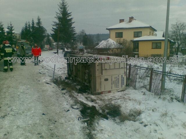 Policjanci interweniowali na miejscu wypadku we Frysztaku w powiecie strzyżowskim. Na drodze wojewódzkiej nr 988 relacji Strzyżów - Jasło zderzyły się samochód ciężarowy z busem przewożącym pasażerów. Pięć osób jest rannych, w tym jedna ciężko. Ruch na tym odcinku drogi odbywa się już bez przeszkód.
