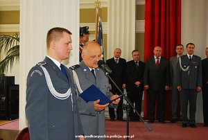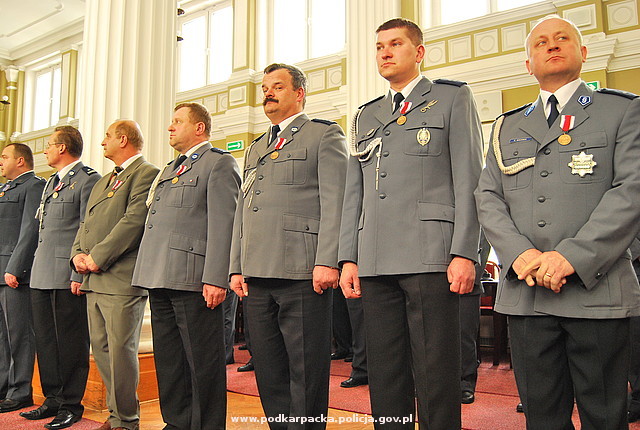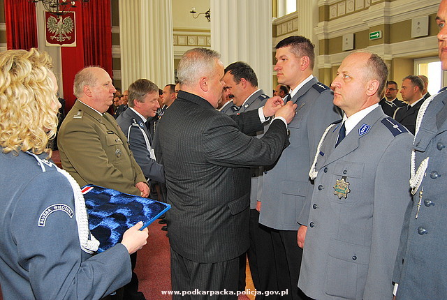 Odznaczeni funkcjonariusze medale i gratulacje odebrali z rąk Wojewody Podkarpackiego Mirosława Karapyty.