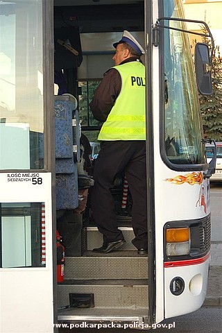 Dziś, około godz. 7.20 na parkingu przed jednym z sanockich gimnazjów policjanci skontrolowali autokar, którym dzieci z tej szkoły miały wyjechać na 2-dniową wycieczkę w Bieszczady. Podczas kontroli okazało się, że kierowca autokaru jest w stanie po użyciu alkoholu. Mężczyzna miał 0,22 promila alkoholu w organizmie. Szereg wątpliwości budził też stan techniczny pojazdu. W związku z tym autokar nie został dopuszczony do ruchu, a policjanci zatrzymali prawo jazdy 47-letniego kierowcy. Dzieci wyruszyły na wycieczkę innym autokarem podstawionym przez przewoźnika.