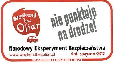 Narodowy Eksperyment Bezpieczeństwa „Weekend bez Ofiar” to akcja, której celem jest wypracowanie postawy dbałości o bezpieczeństwo w ruchu drogowym, a przez to ograniczenie liczby wypadków. Kampania określona została mianem eksperymentu, ponieważ dzięki niej będziemy mogli przekonać się, o ile można zmniejszyć liczbę ofiar na polskich drogach, jeśli zaangażowanie wykaże całe społeczeństwo.