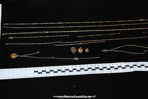 Policjanci zabezpieczyli 6 łańcuszków w pracowniach złotniczych, były rozerwane. Zatrzymani w lipcu i sierpniu br. zaatakowali kilkanaście razy, ale Policja nie wyklucza, że są osoby, które nie zawiadomiły o takich incydentach.