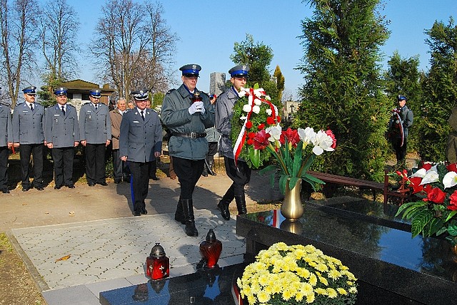 Wartę honorową przy grobie pełnili policjanci z Oddziału Prewencji Policji.
