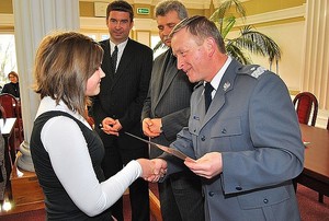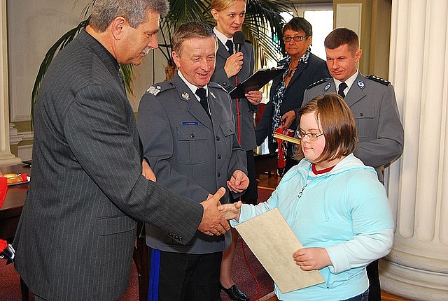 Dziś laureaci konkursu pojawili się w Sali Kolumnowej Podkarpackiego Urzędu Wojewódzkiego w Rzeszowie. Nagrody i dyplomy wręczyli im: Podkarpacki Komendant Wojewódzki Policji nadinsp. Józef Gdański, Podkarpacki Wicekurator Oświaty w Rzeszowie Antoni Wydro i Dariusz Lewandowski-Socha z Regionalnego Ośrodka Polityki Społecznej. Dyplomy otrzymali także opiekunowie nagrodzonych uczniów. W uroczystym wręczeniu nagród uczestniczyli również: Krystyna Błotnicka z Kuratorium Oświaty w Rzeszowie oraz nadkom. Piotr Kluz - Naczelnik Wydziału Prewencji KWP w Rzeszowie.