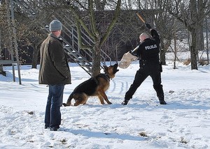 Na początek psy musiały się wykazać umiejętnością aportowania - pies powinien przynosić rzuconą rzecz. Podczas tej próby policjanci sprawdzali też reakcję czworonogów na strzały. Przewodnicy oceniali też agresję psa - idealny kandydat powinien zaatakować pozoranta, który wymachuje przy nim kijem i bronić swojego opiekuna. Psy przeszły te same próby na zewnątrz i w pomieszczeniach. Policjanci sprawdzali ich reakcję na strzały. To też ważny wymóg stawiany czworonożnym kandydatom do Policji - nie mogą bać się huku. Psi sprawdzian uważnie obserwował komisarz Tadeusz Szurlej z Wydziału Prewencji KWP w Rzeszowie. Niestety, żaden z psów nie podołał wszystkim próbom. Niektóre wyeliminował huk wystrzałów, inne okazały się zbyt łagodne.