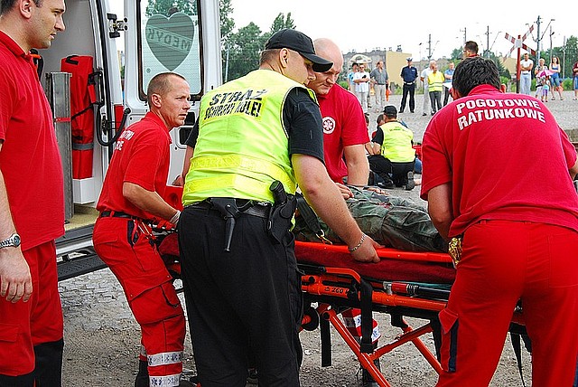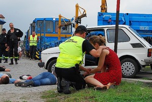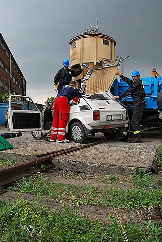 Tak było również w Rzeszowie. Wczoraj, na bocznicy kolejowej w pobliżu ulicy Batorego odbyła się symulacja wypadku na przejeździe kolejowym. W małego fiata stojącego na przejeździe uderzył pociąg. Funkcjonariusze Straży Ochrony Kolei i pracownicy kolei, wspólnie z ratownikami medycznymi przeprowadzili akcję ratunkową. Rannych opatrzono i karetką pogotowia przewieziono do szpitala. Jedna z poszkodowanych osób utkwiła w zniszczonym pojeździe. Na miejsce wezwano specjalną jednostkę kolejowego ratownictwa technicznego, ponieważ konieczne było użycie specjalnego sprzętu do wycinania rannego z samochodu.