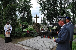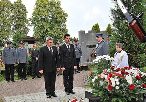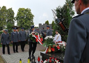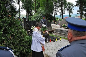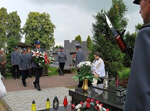 Kwiaty złożyli również Komendant Powiatowy Policji w Jarosławiu insp. Janusz Dymek, jego zastępca podinsp. Robert Matusz oraz kierownik posterunku w Pruchniku asp.sztab. Wojciech Miklasz.