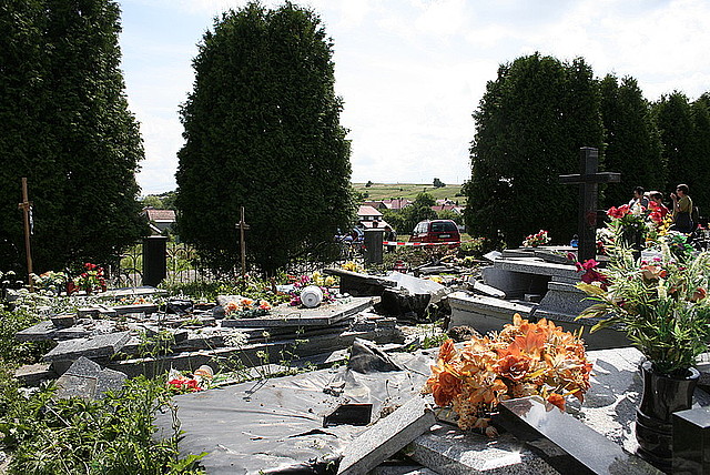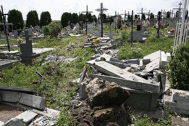 Spychacz przejechał przez cmentarz niszcząc nagrobki