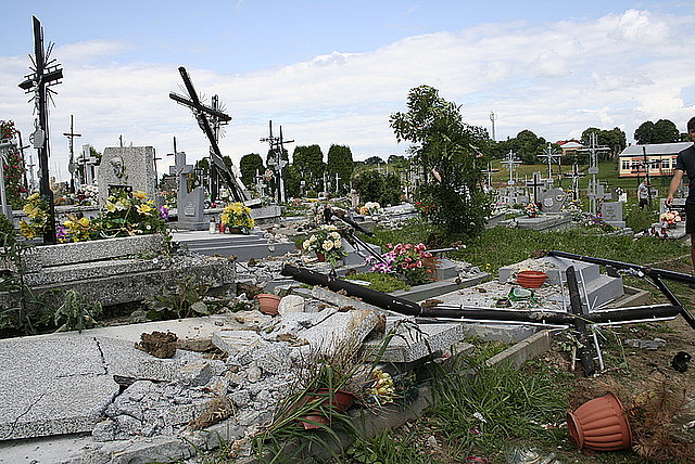 Policjanci wyjaśniają co było przyczyną niecodziennego zdarzenia. Dziś przed południem, w podkrośnieńskich Targowiskach, operator spychacza nie zapanował nad pojazdem, który nie zatrzymując się przejechał przez pobliski cmentarz uszkadzając kilkadziesiąt nagrobków.