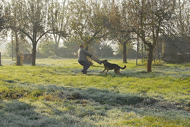 * sprawdzenia umiejętności chwytania i gryzienia rękawa ochronnego,