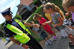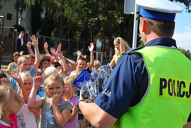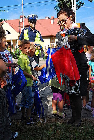 Dzięki współpracy podkarpackiej Policji z Urzędem Marszałkowskim Województwa Podkarpackiego najmłodsi piesi otrzymali dziś elementy odblaskowe, poprawiające ich bezpieczeństwo na drodze. Do dzieci trafiły specjalne, odblaskowe kamizelki, zawieszki, linijki, odblaskowe worki na obuwie, a nawet piórniki. Rozdawali je wspólnie policjanci ruchu drogowego i przedstawiciele Sieci Punktów Informacyjnych Funduszy Europejskich woj. podkarpackiego. Podczas działań, policjanci rozmawiali z dziećmi o podstawowych zasadach bezpieczeństwa, uczyli je także bezpiecznego przechodzenia przez jezdnię.