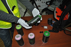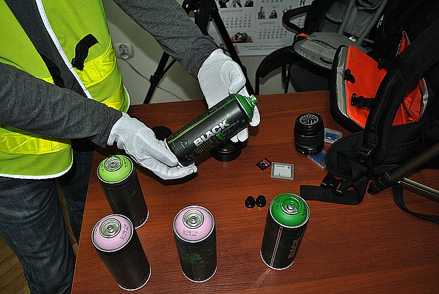 Było około godz. 21.30, gdy policyjny patrol z komendy miejskiej dostrzegł grupę młodych ludzi. Jeden z mężczyzn coś fotografował, inny malował po ścianie farbą w sprayu, kolejny znajdował się w fiacie uno, którego reflektory oświetlały budynek. Dwóch innych prawdopodobnie stało w tym czasie "na czatach". Na widok zbliżających się policjantów, mężczyzna, który malował po elewacji zaczął uciekać. Po krótkiej chwili został zatrzymany.